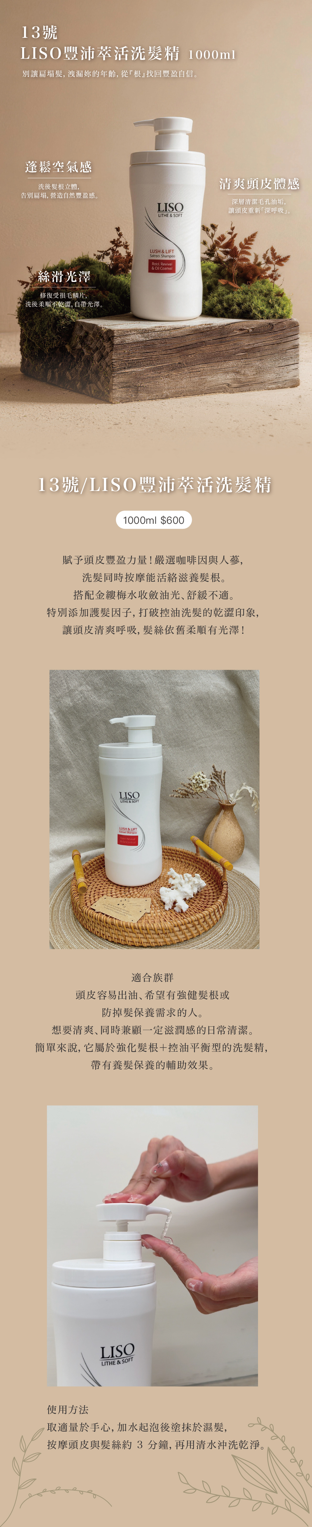 ✨ 主要功用:清潔頭皮與頭髮、強化髮根活力、舒緩與平衡頭皮、護理頭髮、減少乾澀