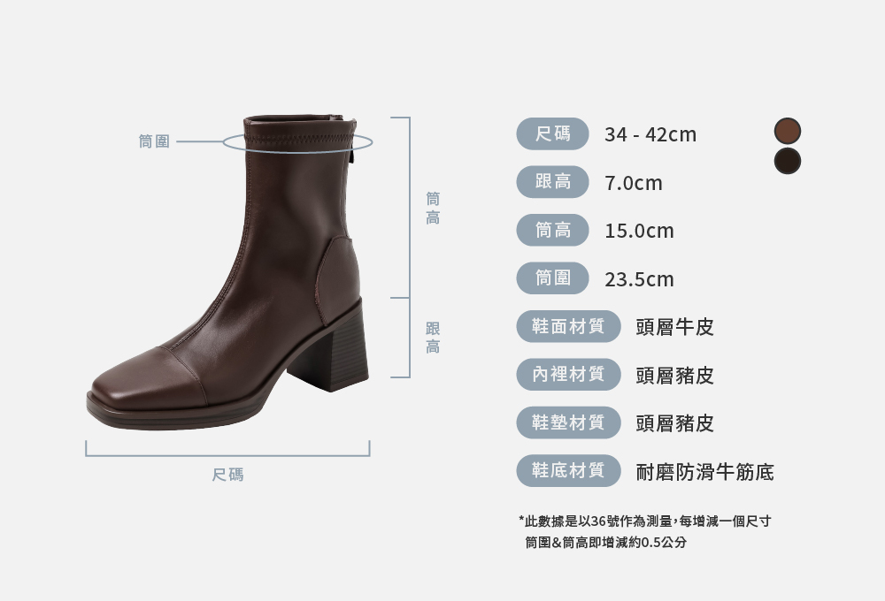 *此數據是以36號作為測量,每增減一個尺寸筒圍&筒高即增減約0.5公分
